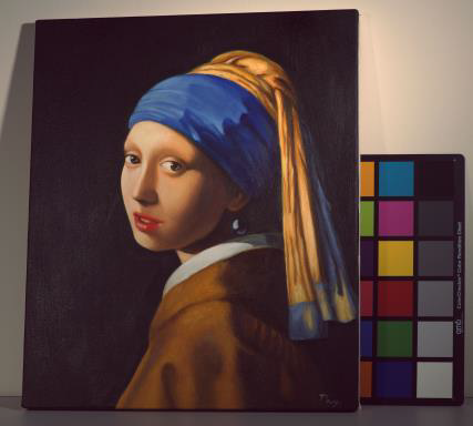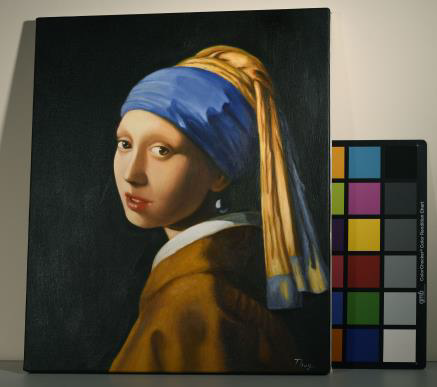 | レプリカの油彩画を、今回のセミナーで実施する手法を用いて、アーカイブしたものです。この例では、いずれか一方が3chで、残りの一方が6chのマルチバンドでとらえたものです。どちらがより本物に近いでしょうか?答えは、セミナーでご確認下さい。 |