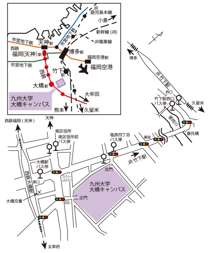 福岡空港 - - (タクシー,2,500円程度)- - 大橋キャンパス